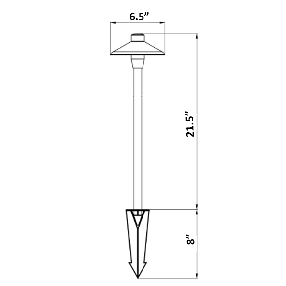 - 6 ½” china hat width a 1” x 18” long matching stem; Total fixture height is 21 ½” (above-ground measurement).